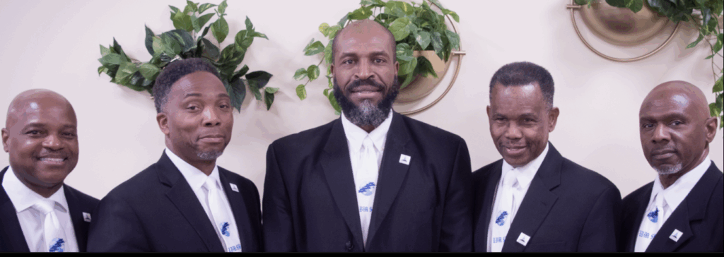 (l-r) First Elder Maury Mungin, Eder John Robertson, Elder Winston Miller, Elder George Roberts, Elder Carlton R. McKoy
